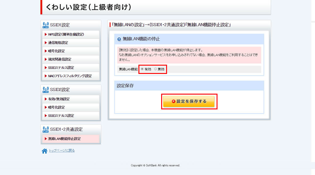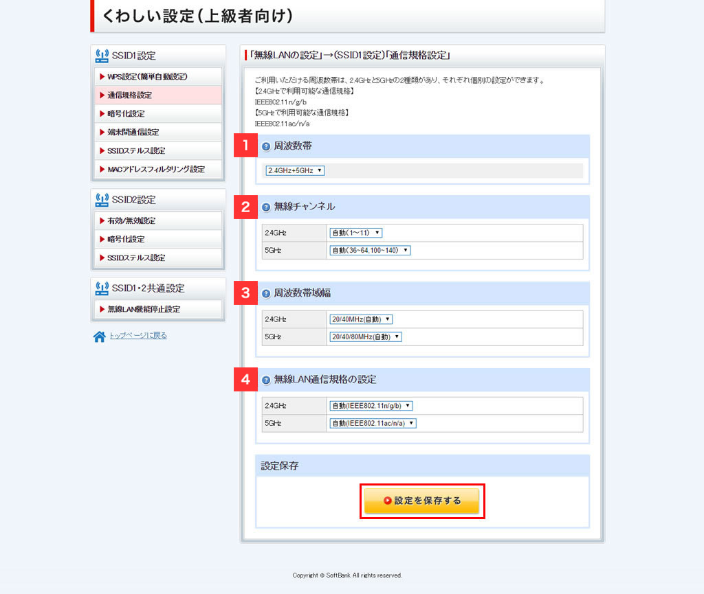 - ここで行う設定は、SSID1/SSID2の両方に適用されます。