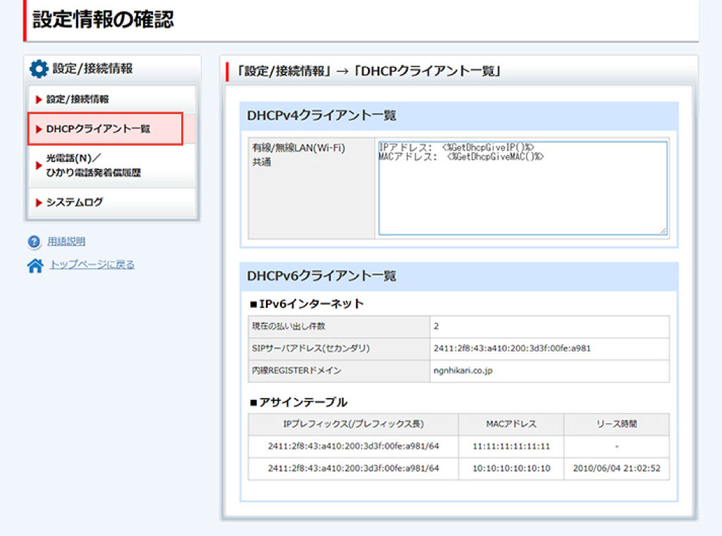 光BBユニットで使用したひかり電話発着信履歴の確認ができます。