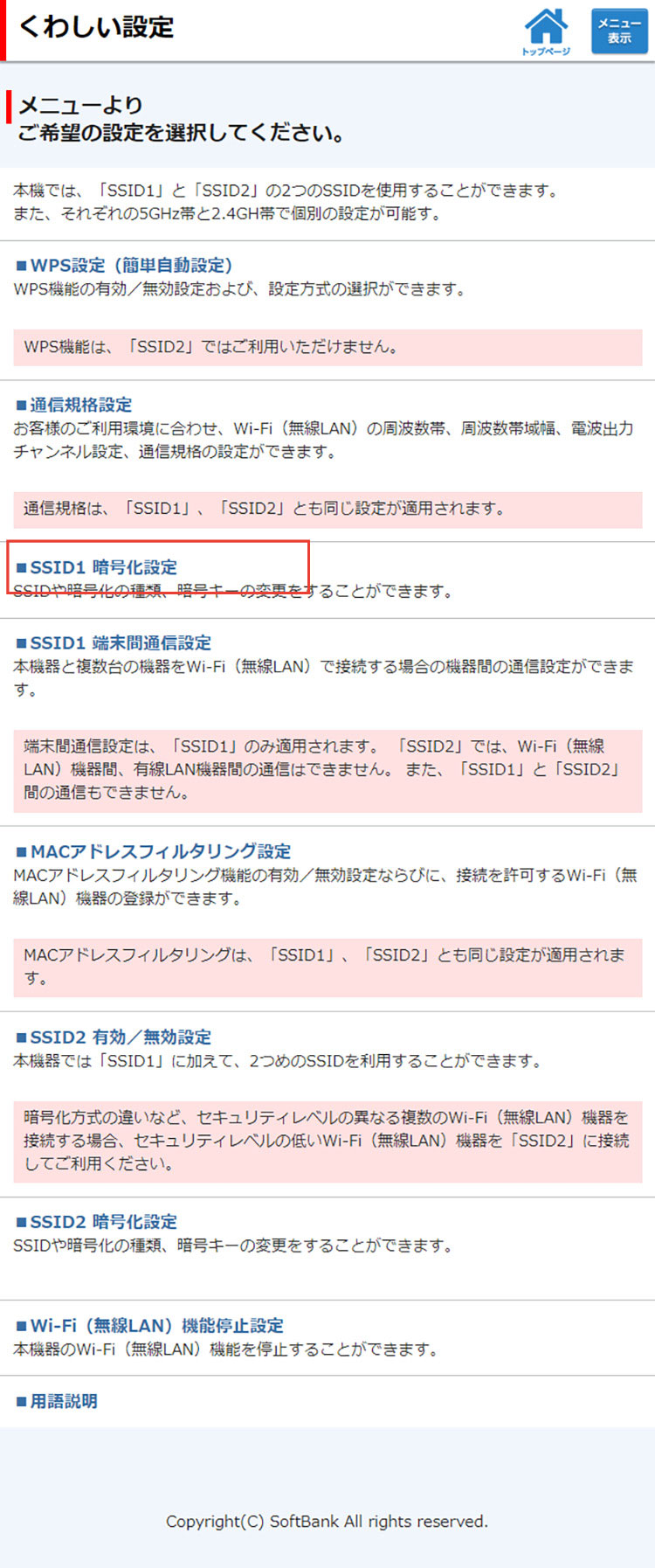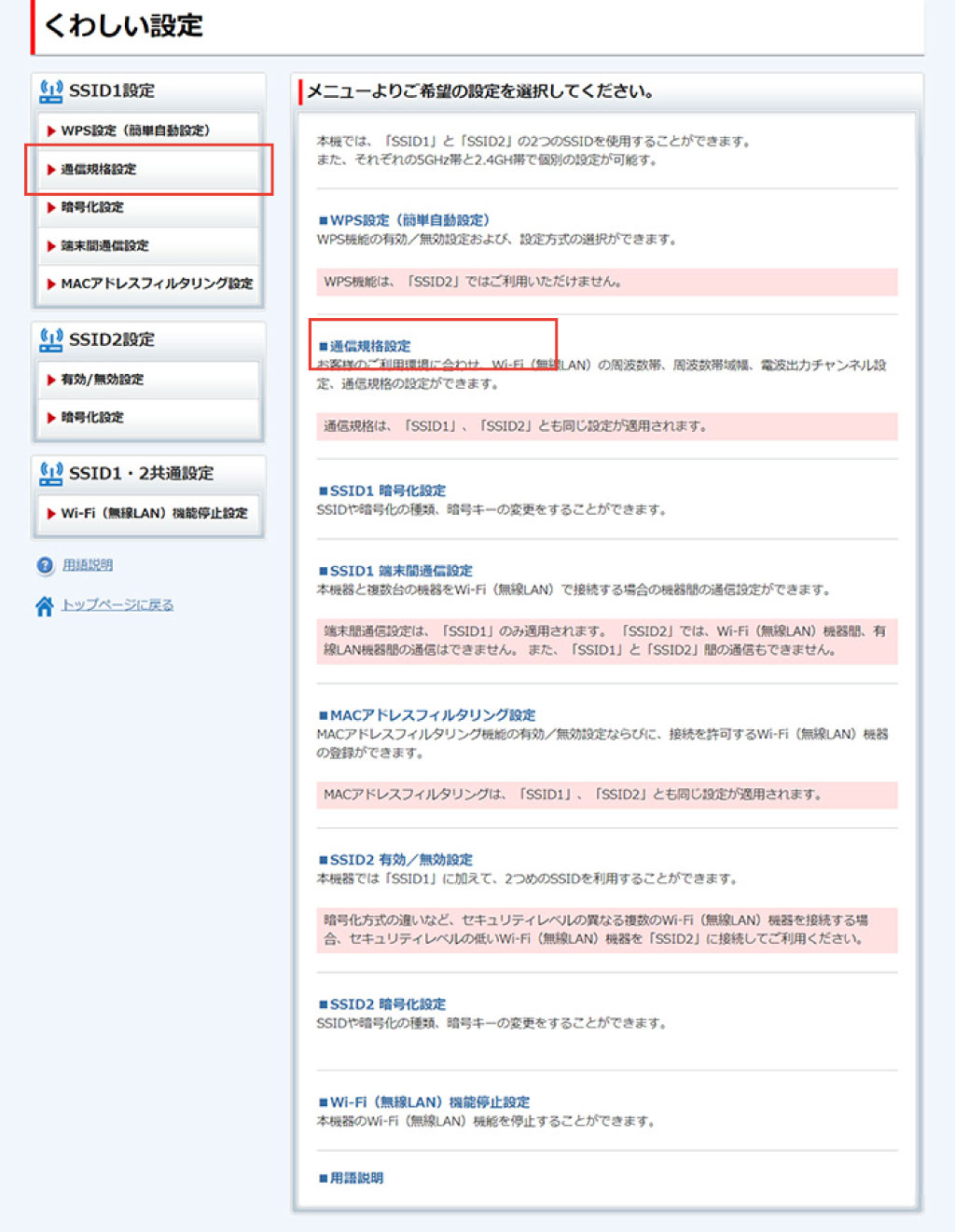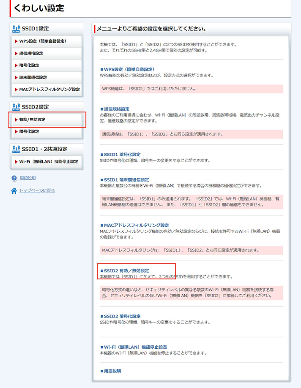 - ここで行う設定は、SSID1/SSID2の両方に適用されます。