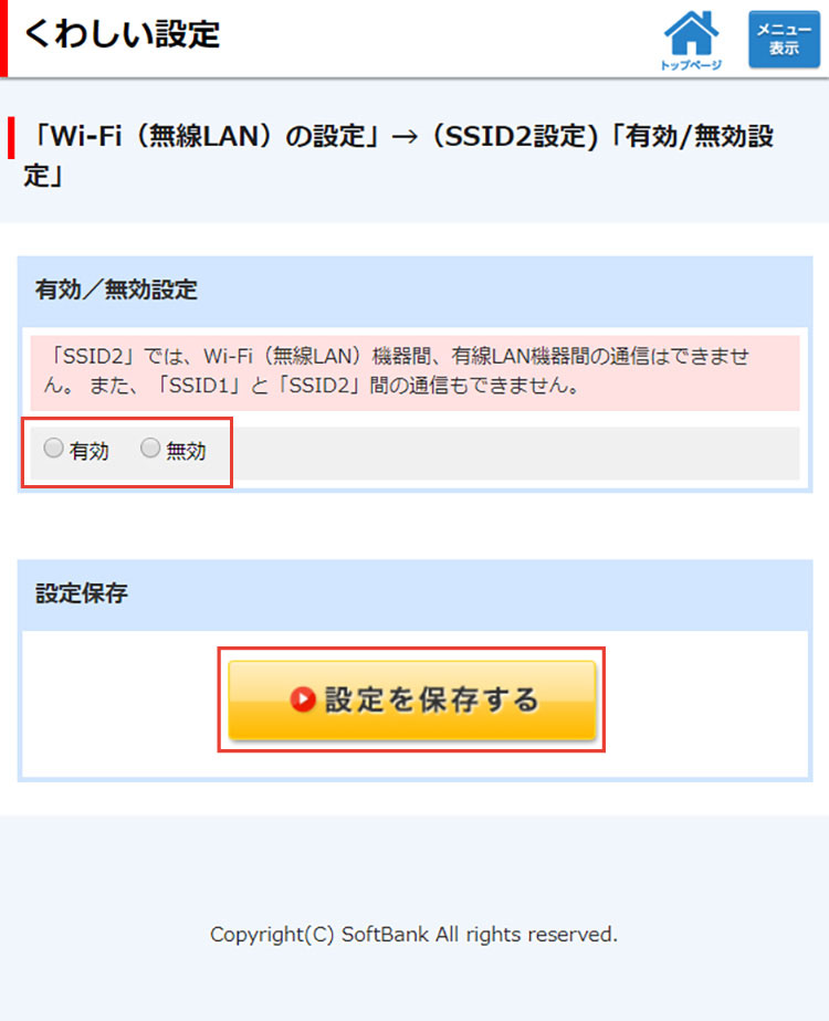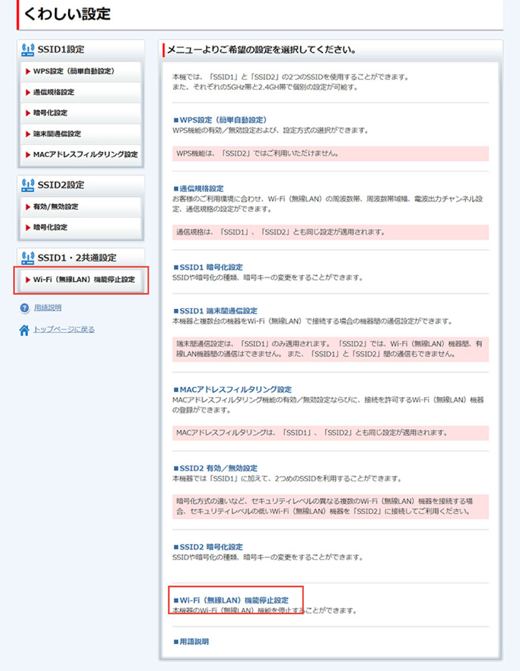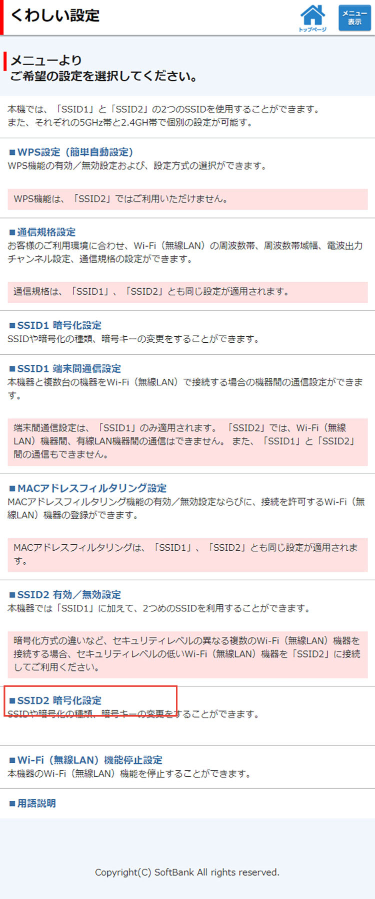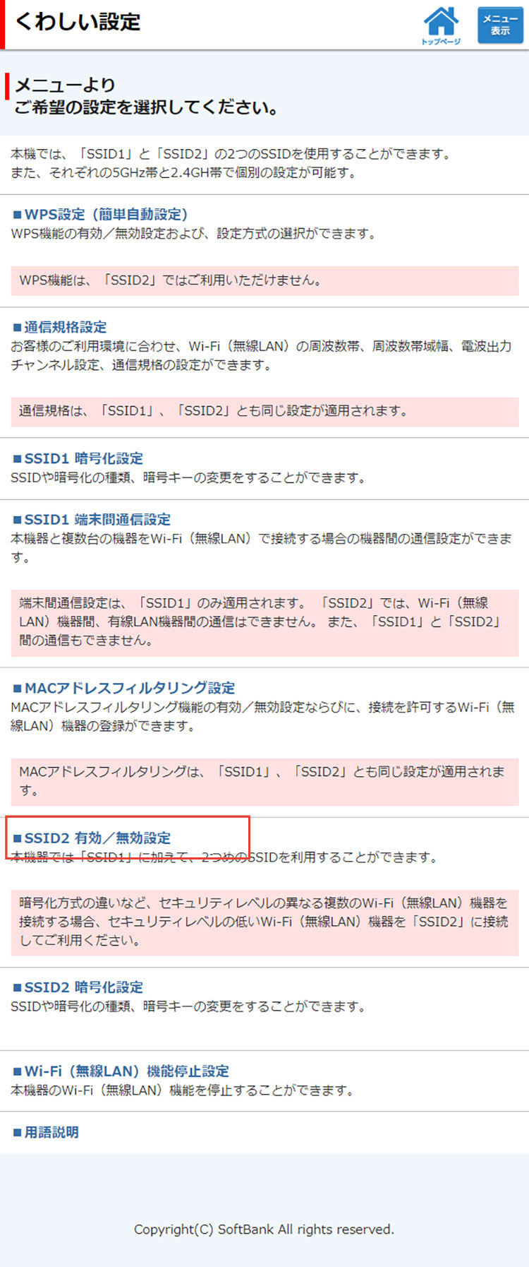 - ここで行う設定は、SSID1/SSID2の両方に適用されます。