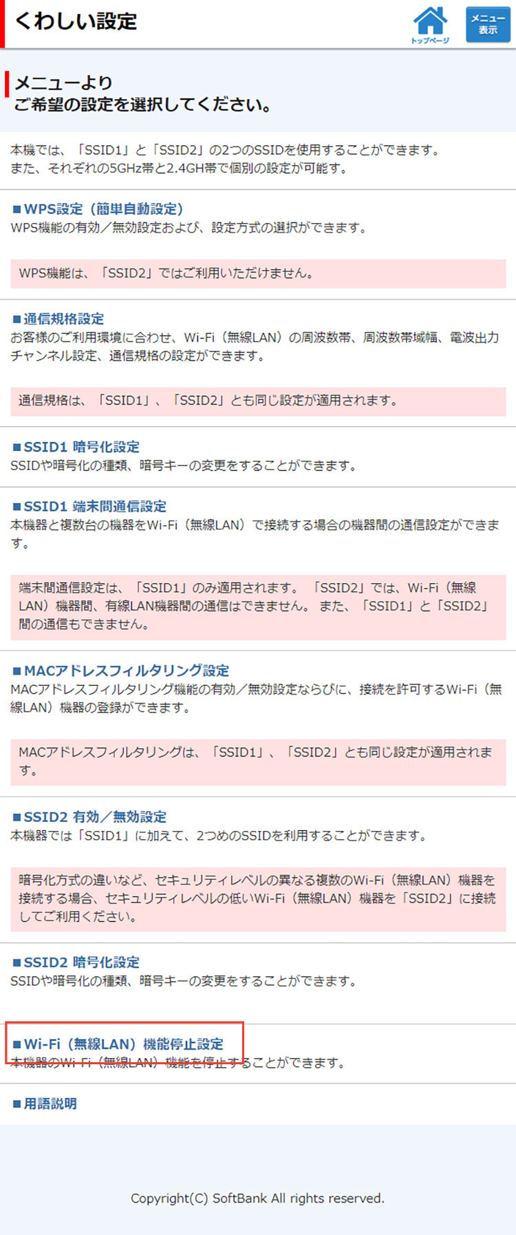 - SSID:光BBユニットの無線LANネットワークを区別するための名前。