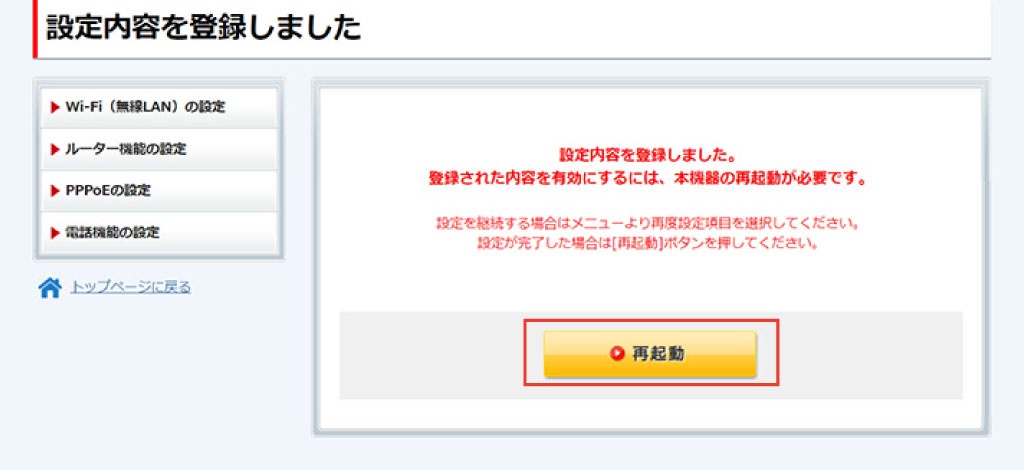 [再起動]をクリックします。