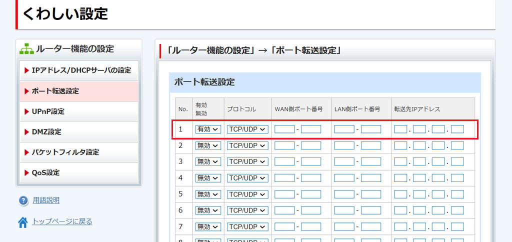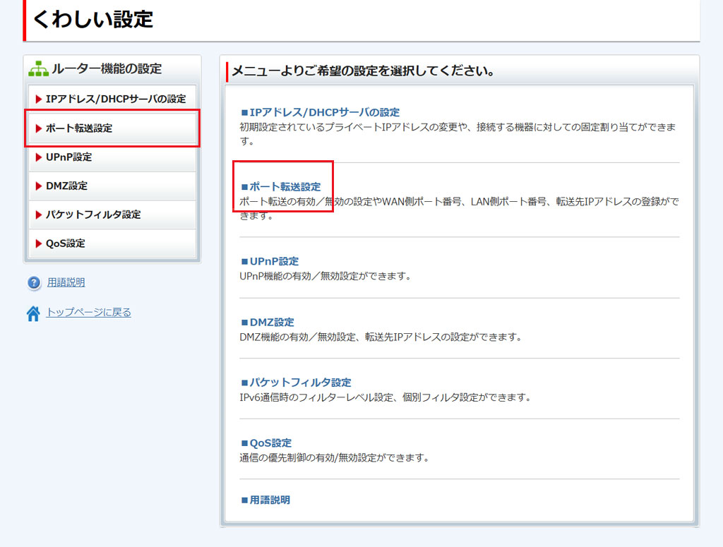 ポート転送設定する必要のある情報が表示されている場合は、本項目で改めてポート転送設定する必要はありません。 -
