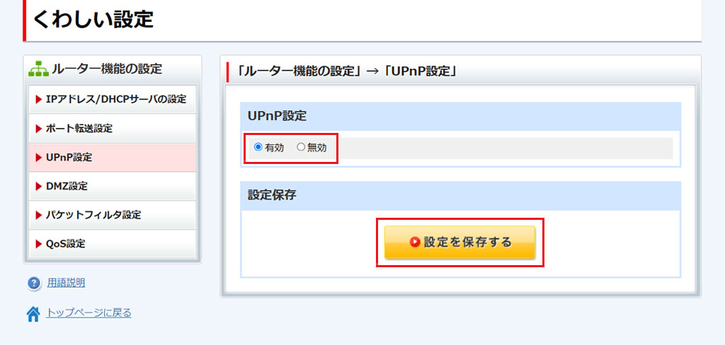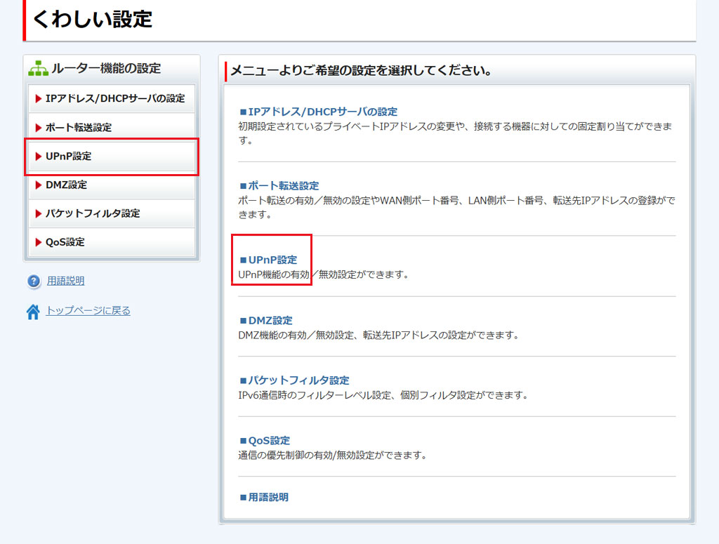 - UPnPに対応したアプリケーションを利用するために、UPnPを有効にしたい。