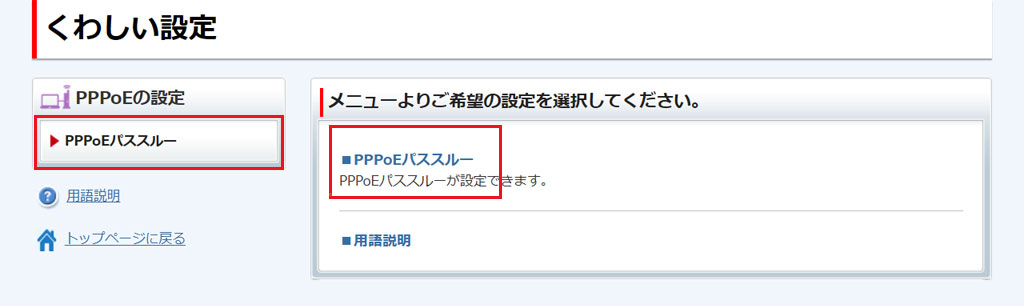 本項目では、PPPoEパススルーの有効/無効を選択できます。