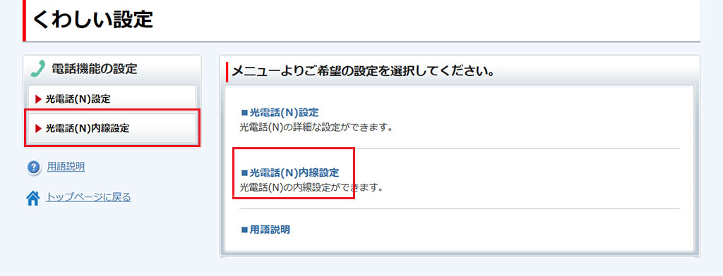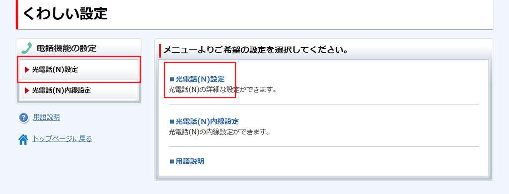 - 光電話機能/ひかり電話機能で光電話(N)設定をご利用になる場合の設定です。