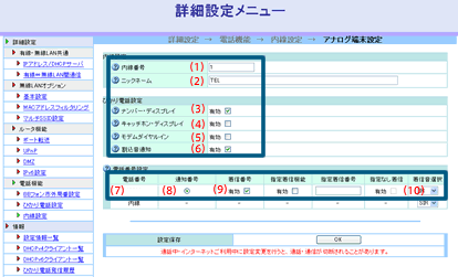 - (1)内線番号:お好きな番号(2桁まで)に変更