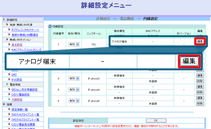 「アナログ端末」と表示されている欄の[編集]ボタンをクリックします。