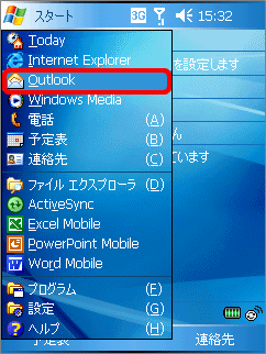 「スタート」から「Outlook」をタップ(押す)、またはメールボタンを押します。