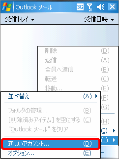 オプション設定をする場合は、「オプション」をタップします。受信メール:ybbpop.mail.yahoo.co.jp