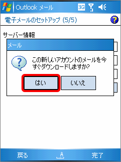 「この新しいアカウントのメールを今すぐダウンロードしますか?」と表示されたら、「はい」をタップします。