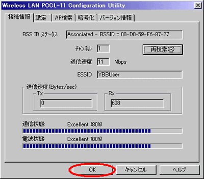 以上でWireless LAN PCCL-11ユーティリティでの無線LAN設定は完了しました。