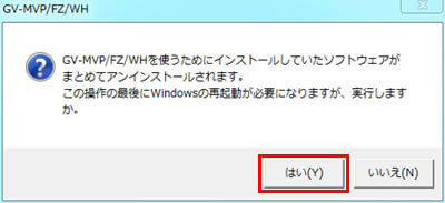 確認メッセージが表示されますので、[はい(Y)]を選択します。アンインストールが進みます。