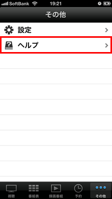 視聴画面をタップします。画面右上に表示されるアイコンをタップし、表示されたメニューから[ヘルプ]をタップします。