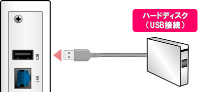ハードディスクは別途ご用意ください。なお、接続したハードディスクのデータはすべて消去されますのでご注意ください。- 対応ハードディスクは下記ページをご確認ください。
