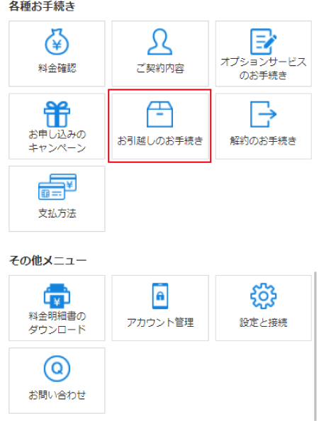表示が切り替わったら「お引っ越しのお手続き」を選択してください。
