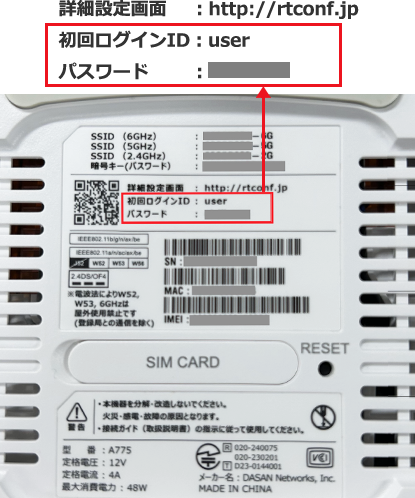 パスワード:端末固有の英数字10桁