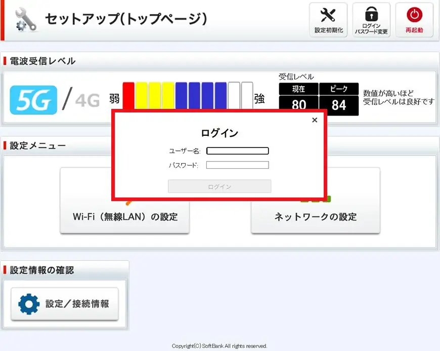[http://192.168.3.1/Home/toppage/5g4g]にアクセスし、セットアップ画面を表示します。