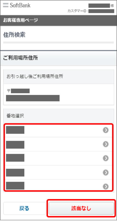 「番地」をタップ、または該当する番地がない場合は「該当なし」をタップ