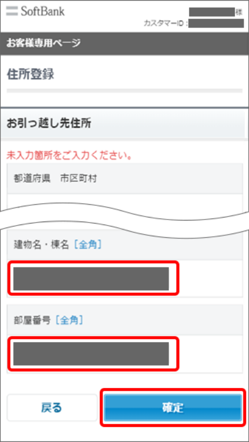 「建物名・棟名」や「部屋番号」がある場合は、入力後「確定」をタップ