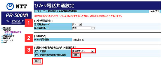 光電話(N)で通話中に相手先からのメディア変更を許可するかしないかを選択します。