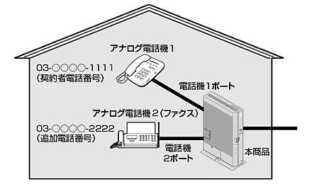 電話機2ポートに接続したアナログ端末に優先的に着信します。