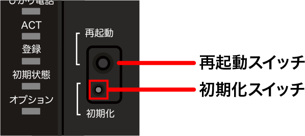 初期化スイッチを押し続けた状態で、再起動スイッチを押して離します。