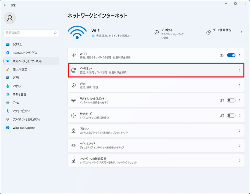 11をご利用の場合の有線接続(モデムなどの接続機器とパソコンをLANケーブルで接続する方法)によるインターネット接続設定方法をご案内します。