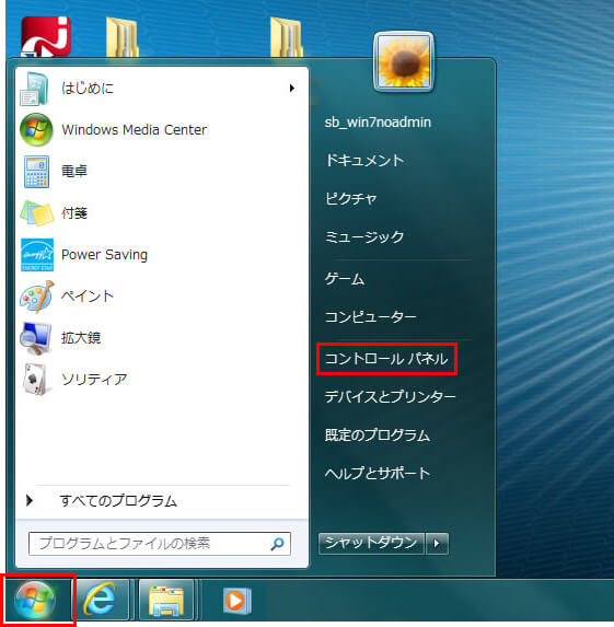 - (2)表示されたメニューから[コントロールパネル]を選択します。