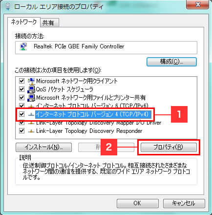 - (1)[インターネット プロトコル バージョン 4 (TCP/IPv4)]を選択します。