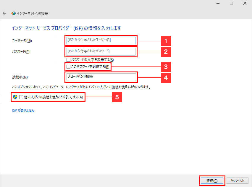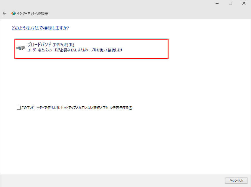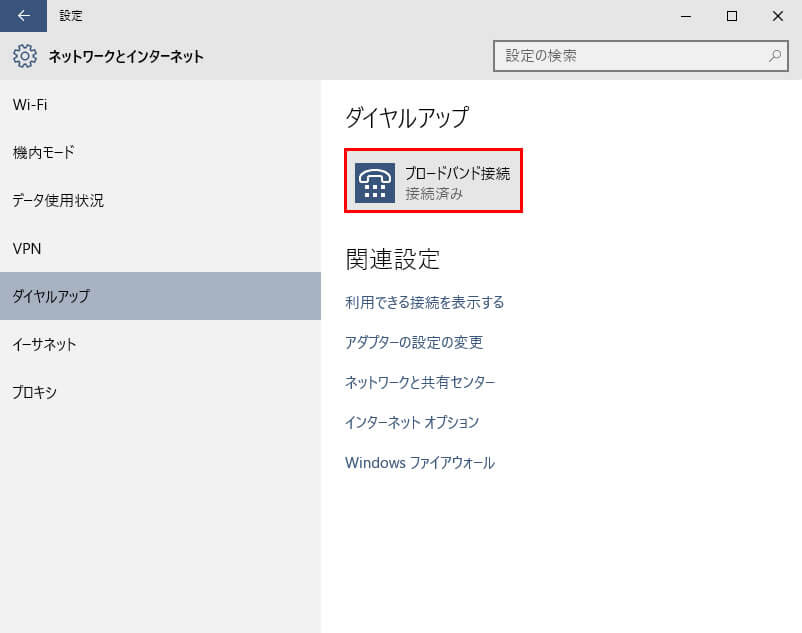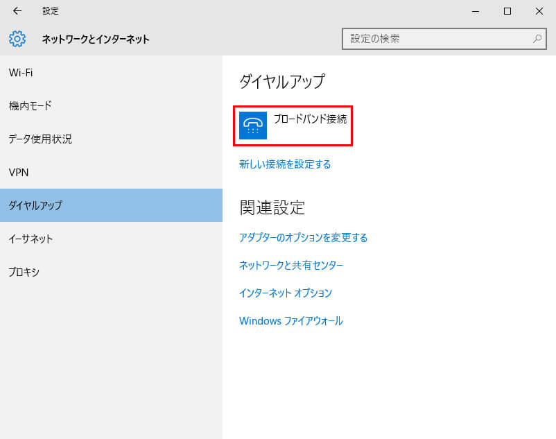 - [ブロードバンド接続]という名称は[Windows 10設定・確認方法]の手順9で設定した接続名により異なります。