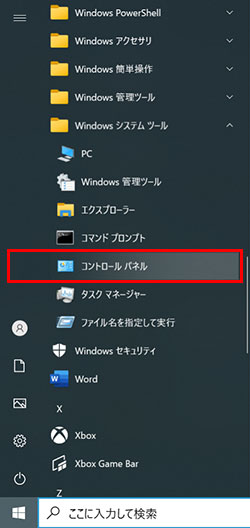 - 見つからない場合はタスクバーの検索ボックスに「コントロールパネル」と入力してください。