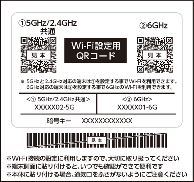 - SSID 表示 : XXXXX01-6G※ → 6GHz