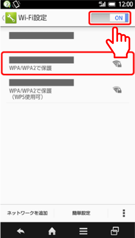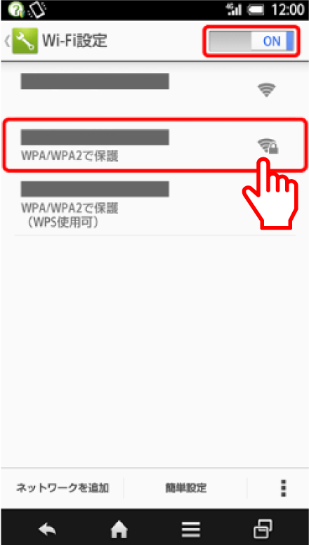4で確認したSSIDと同じ名前のネットワークを軽く叩いてください(タップ)。