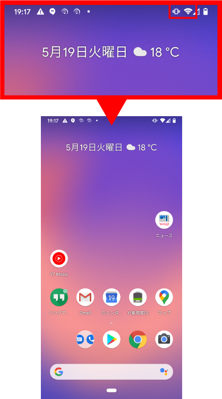 下の図のような、Wi-Fiマークがある場合、Wi-Fiに繋がっています。
