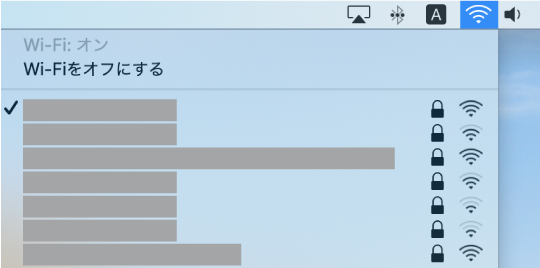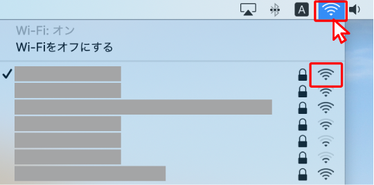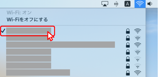 2で確認したSSIDと同じ名前にチェックマークが入りWi-Fiマークが