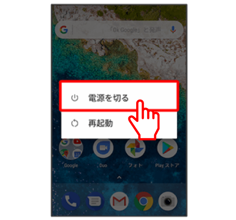 電源ボタンを長押しして「スライドで電源オフ」をスライドします。