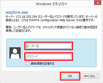 ユーザ名/パスワードを入力する画面が表示されます。ユーザー名(初期ログインID)/パスワードを入力ください。