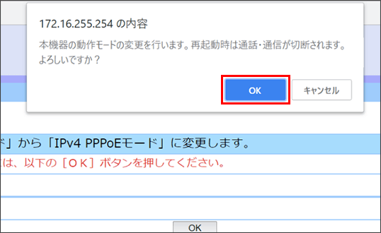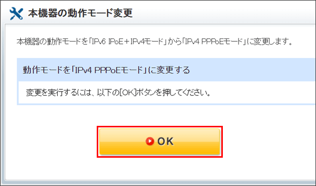 ログイン後、「本機器の動作モード変更」の[OK]ボタンをクリック。