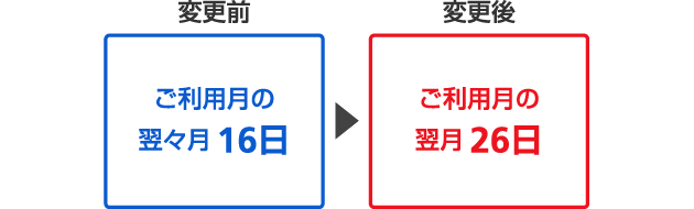 お支払い日が16日から26日に変更となります。
