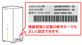 ラベルのQRコードと機器側面に記載の暗号キーは正しいため、そちらをご利用下さい。