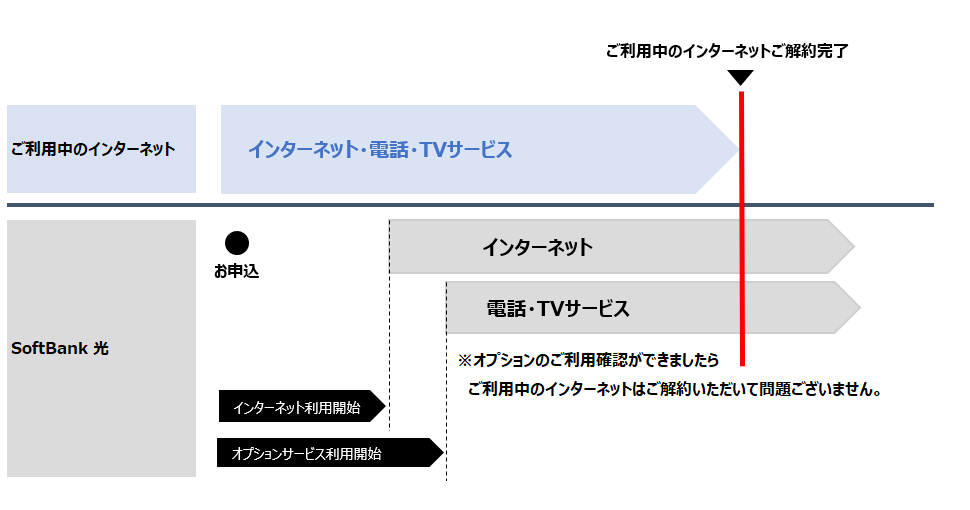 SoftBank 光の開通後にご利用中のサービスを解約される場合は