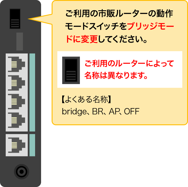 背面スイッチの例を記載しておりますが、詳しくはお持ちのルーター取扱説明書をご確認ください。