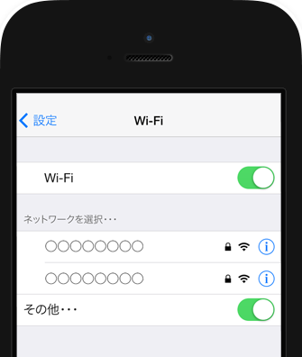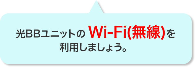 スマートフォンのWi-Fi設定から「光BBユニットの側面ラベルに記載されているSSID」を選択し、ご利用ください。