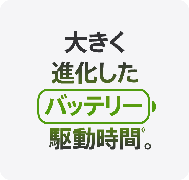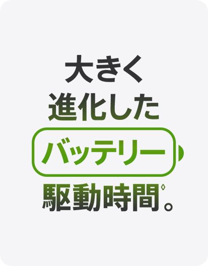 - 電源とバッテリー:バッテリーに関する各数値はネットワーク構成やその他の多くの要素によって変わり、実際の結果は異なる場合があります。 バッテリーは充電回数に限りがあり、将来的には交換が必要になる場合があります。 バッテリー駆動時間と充電サイクルは使用方法と設定によって異なります。 詳しくはapple.com/jp/batteriesおよびapple.com/jp/iphone/battery.htmlをご覧ください。
