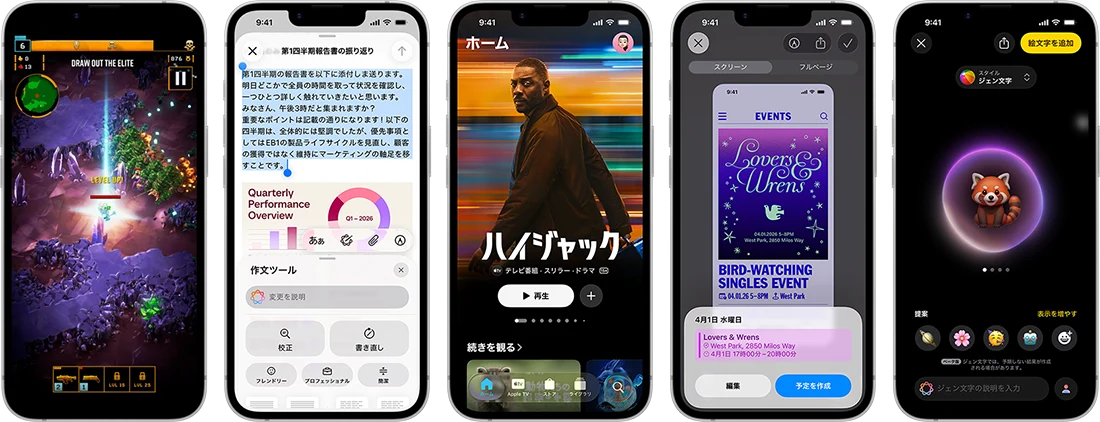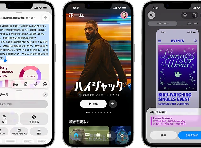 - Apple Intelligence: ベータ版で利用できます。 地域や言語によっては一部の機能を利用できない場合があります。 利用できる機能と対応言語、システム条件についてはsupport.apple.com/ja-jp/121115をご覧ください。