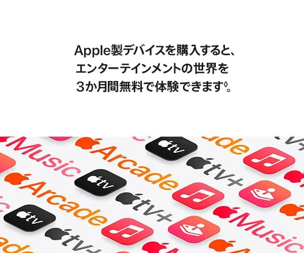 • Apple TV+体験オファー:新規登録の方と条件を満たす再登録の方のみが対象です。 体験利用の終了後は月額900円がかかります。 本オファーの利用は、1つのApple Accountにつき1回に限られます。 ファミリー共有のグループに参加している場合は、個人または家族によるデバイスの購入数に関わらず、1家族につき1回に限られます。 あなた、またはその家族が3か月間もしくは1年間のApple TV+体験オファーをこれまでに利用している場合、本オファーは利用できません。 本オファーを利用するには、対象となるデバイスのアクティベーションから3か月以内にサブスクリプションに登録する必要があります。 キャンセルしない限りサブスクリプションは自動的に更新されます。 制限およびその他の条件が適用されます。 サブスクリプションは、ファミリー共有のグループにつき1件です