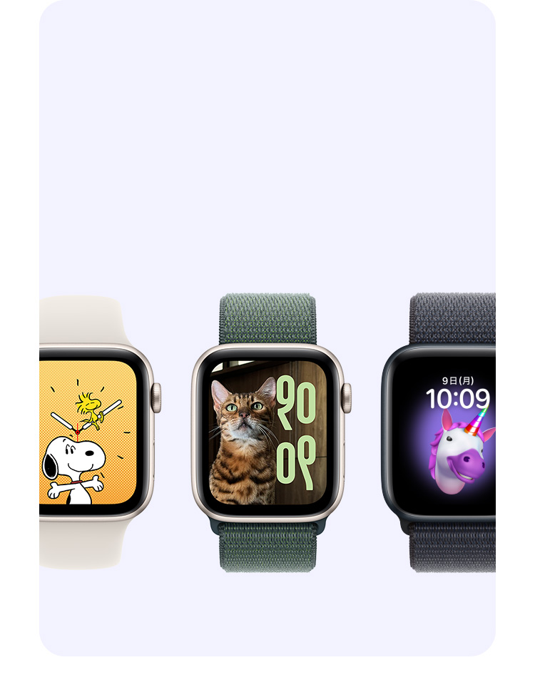 - 利用できる機能:機能は変更される場合があります。地域や言語によっては一部の機能、アプリケーション、サービスを利用できない場合があります。詳しくはapple.com/jp/watchos/feature-availabilityをご覧ください。