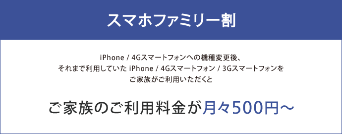 「スマホファミリー割」は2014年10月23日(木)をもちまして新規受け付けを停止いたしました。