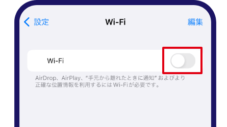 「設定」→「Wi-Fi」を選択し、オフにしてください。